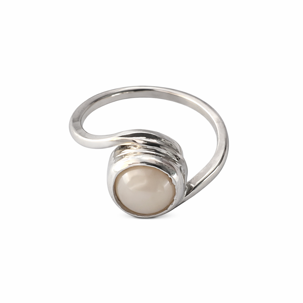 Elegant silver ring featuring a smooth white stone set in a modern, minimalist design. Perfect for everyday wear or special occasions.