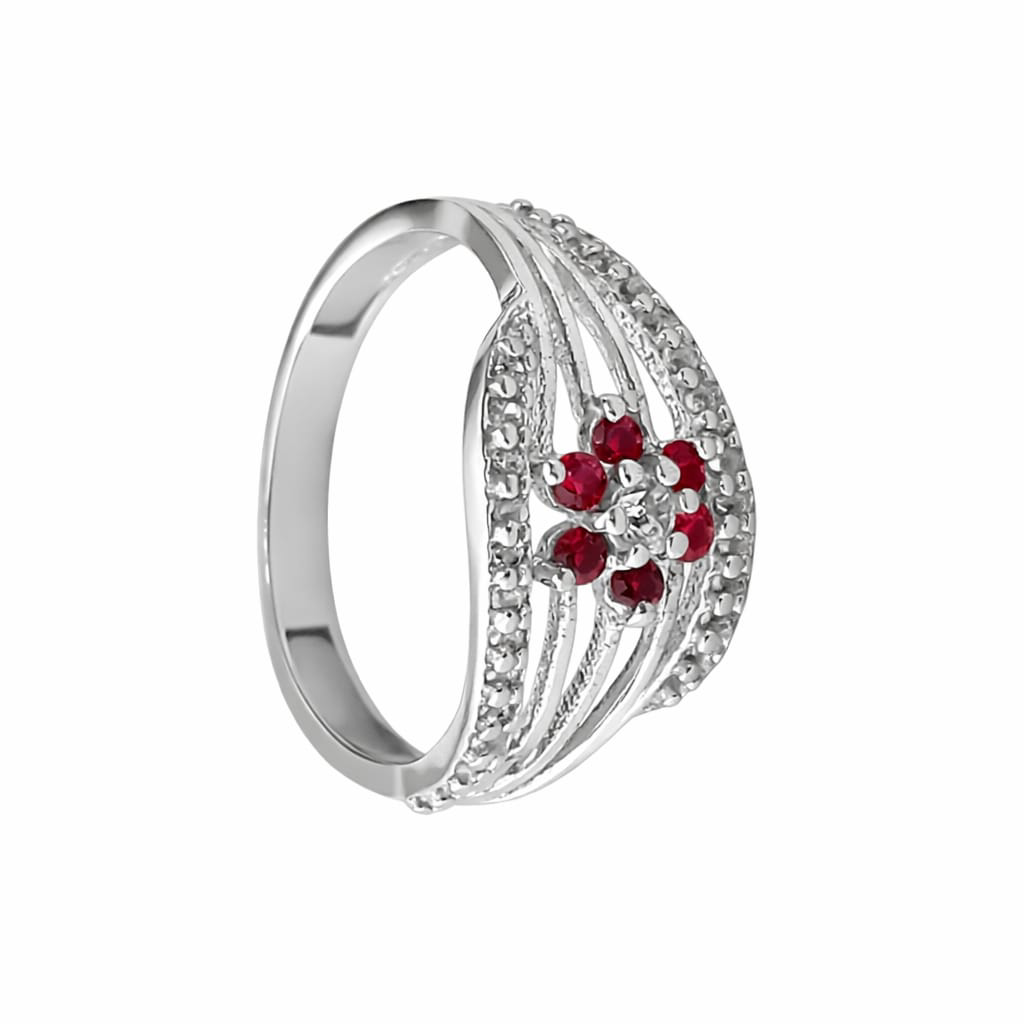Is beautiful floral design ring me red stones aur sparkling crystals ka combination diya gaya hai. Traditional aur modern dono outfits ke saath achhi lagti hai.