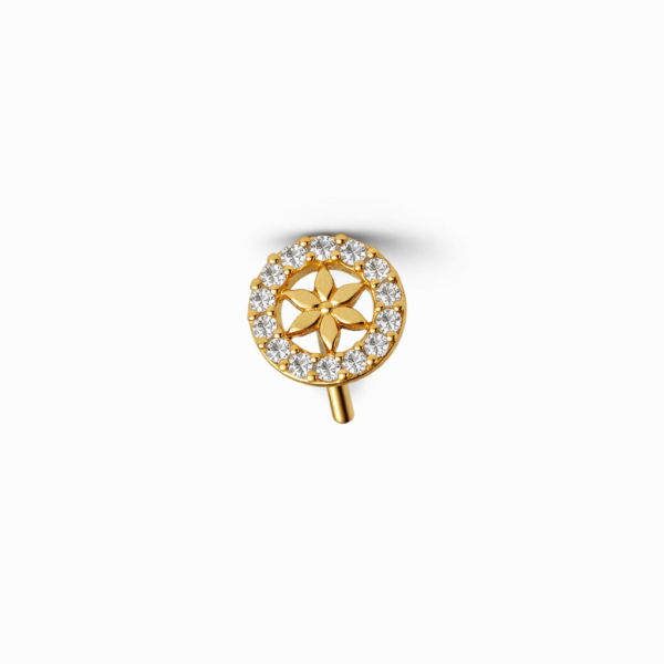 Be the first to review “Elegant Floral Gold Nose Pin with Sparkling Stone Border | Premium Finish Design”